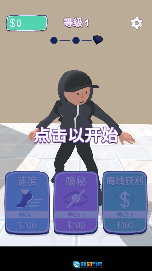 3、操作简单易上手:通过滑动屏幕就能控制移动方向,点击按钮可触发下蹲或加速动作,没有复杂的操作门槛,即便是新手也能快速掌握盗窃的核心技巧。