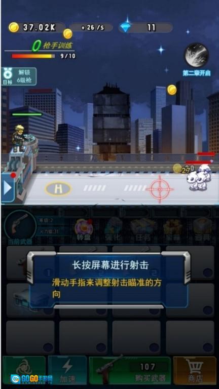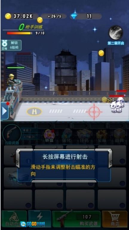 2、触摸瞄准的操作十分流畅,点击屏幕中心即可触发锁头暴击,滑动屏幕还能进行扫射以清理成群的僵尸,整体手感相当出色。