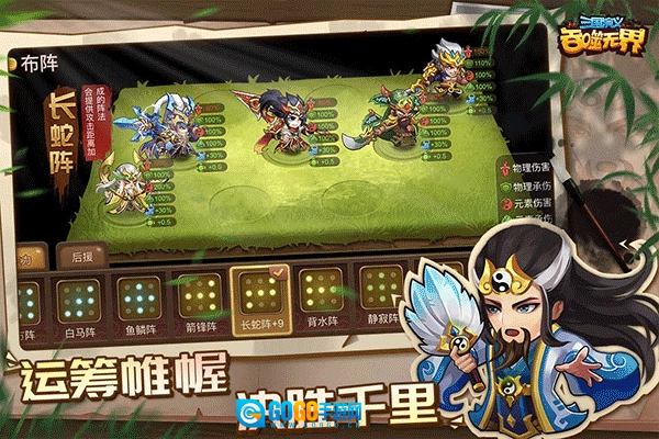 《三国演义吞噬无界》是一款以三国为题材的游戏,游戏里有大量可选择的角色,每个角色都拥有炫酷技能;玩家还能自由探索各个地图,以此获取更多武将,不断壮大自己的队伍。游戏的画风十分卡通,人物设计也很Q版,同时还包含丰富的故事剧情,以及各种著名战役——玩家可以在游戏中再次体验这些战役,获得身临其境的参与感。