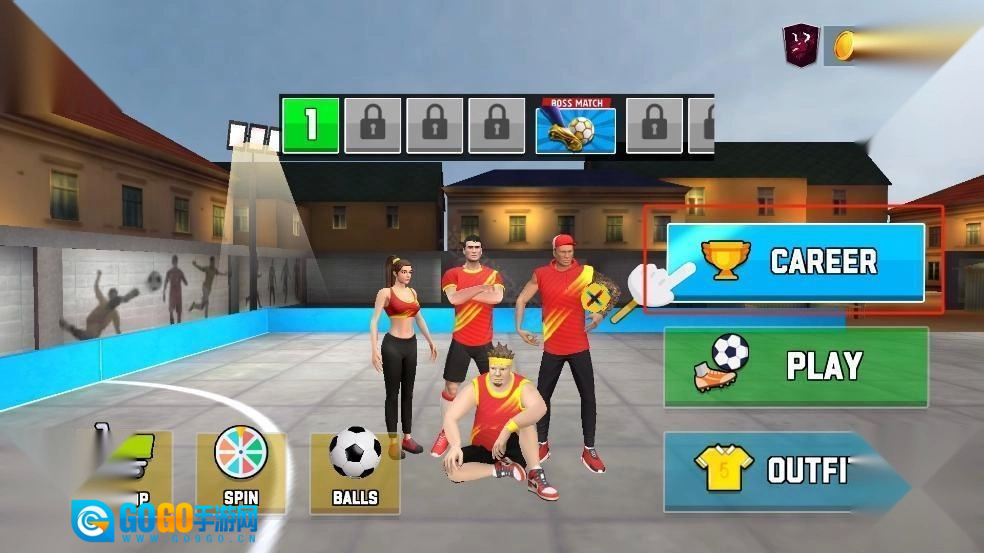 3、进入首页后,接着点击指示下方的【CAREER】,开启属于自己的足球冠军荣耀争夺之旅。在这里,你将面对各式各样的足球情景,需要灵活运用各类足球技能来应对挑战。