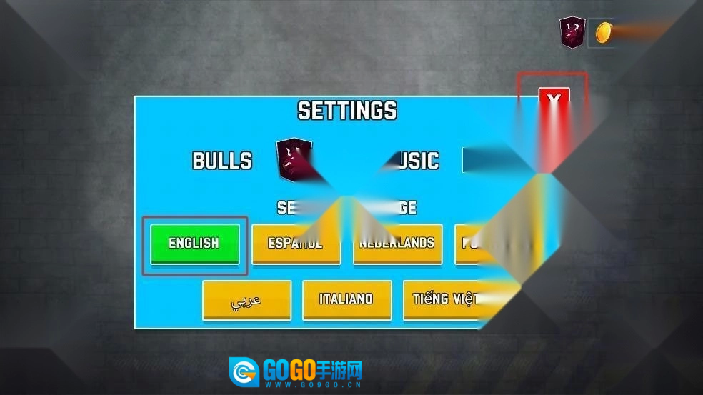 1、进入球场竞技前,先在此处选择自己的队伍——从不同动物形象设计的徽章里挑一个喜欢的,带领球队在球场上征服所有对手; 2、选好队伍后,接着在此选择语言以契合自身需求。比如小编选了第一个【ENGLISH】,之后点击右上角的叉号关闭当前页面,就能进入下一步啦。