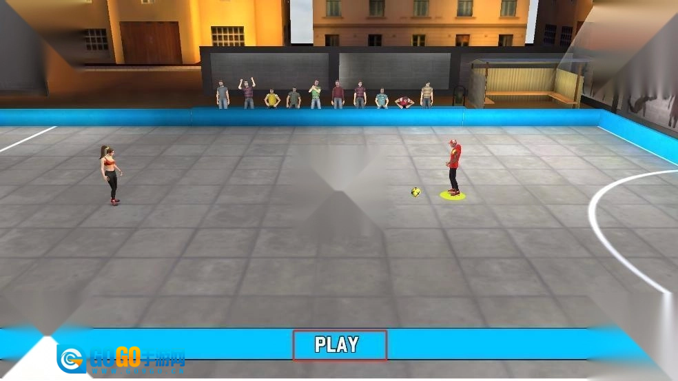 4、接着就会进入一个众人欢呼的足球场,这里将上演男女之间的足球对抗。点击下方的【PLAY】按钮,开启这场精彩的足球对决,去征服一场又一场激动人心的荣耀球赛。