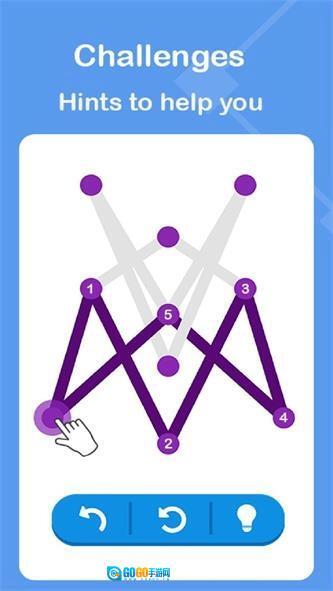 1、一笔连线挑战:核心玩法为用一笔连接场景里的所有点,保证连线既不中断也不重复,玩家通过拖动手指来绘制连线,以此考验对路线的整体规划能力。