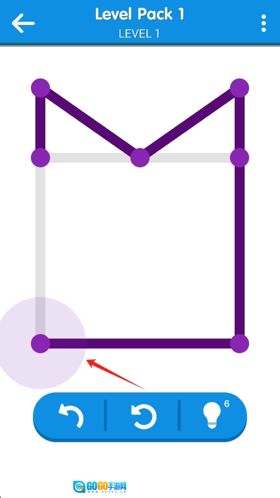 3、在第一关的操作场景里,按照箭头的提示来执行对应的操作,以此完成一线任务,操作时需按住进行画线。