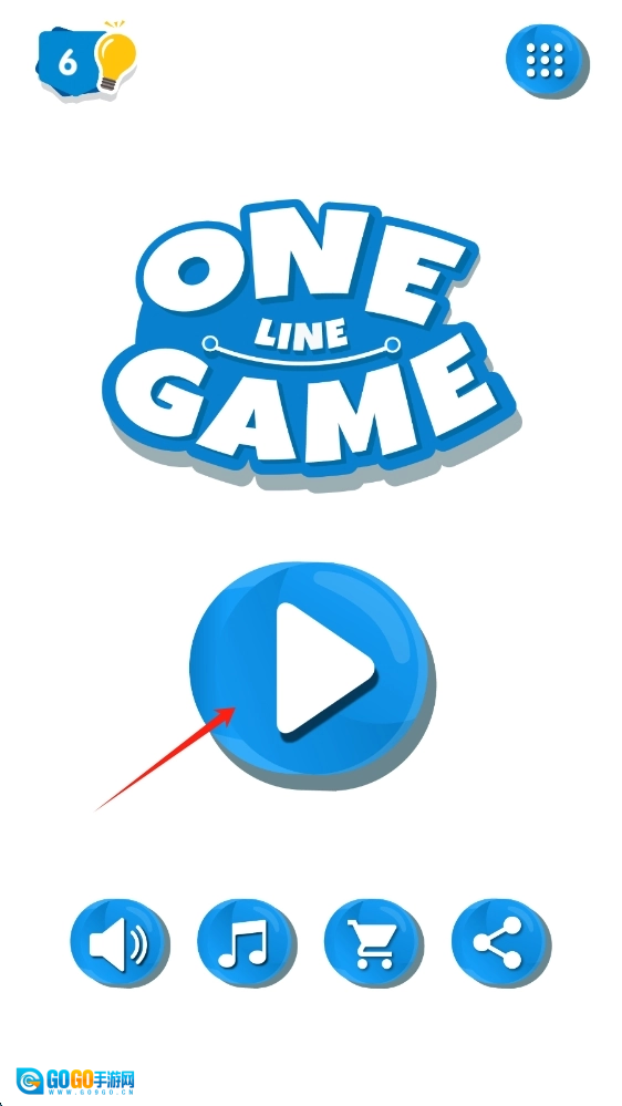 1、在One-Line-Game的启动界面,按照箭头的指引,点击开始按钮,开启一线冒险之旅,点击该按钮即可进入游戏。