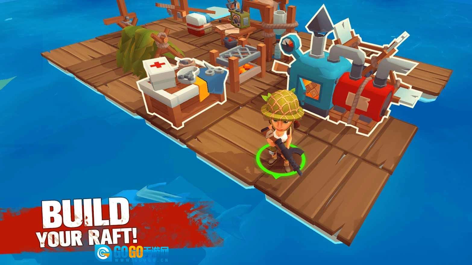 1.在海上搭建属于自己的基地,储备更多资源,收集各类食物,唯有如此才能维持生存。