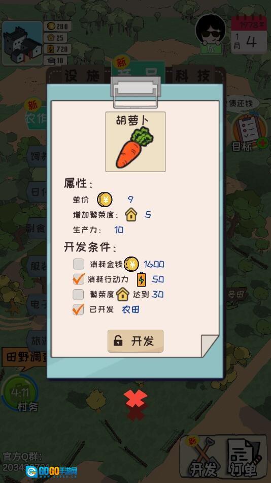 在《加油村长》这款游戏里,玩家能化身为一村之长。游戏贴心设置了领奖励的机制,玩家需要带领村民们共同致富——开垦农田、学习种植更多种类的农作物、承接各类订单,还能研发新科技。游戏玩法既真实又有趣,你得好好规划村子的致富路径,朝着目标稳步迈进。