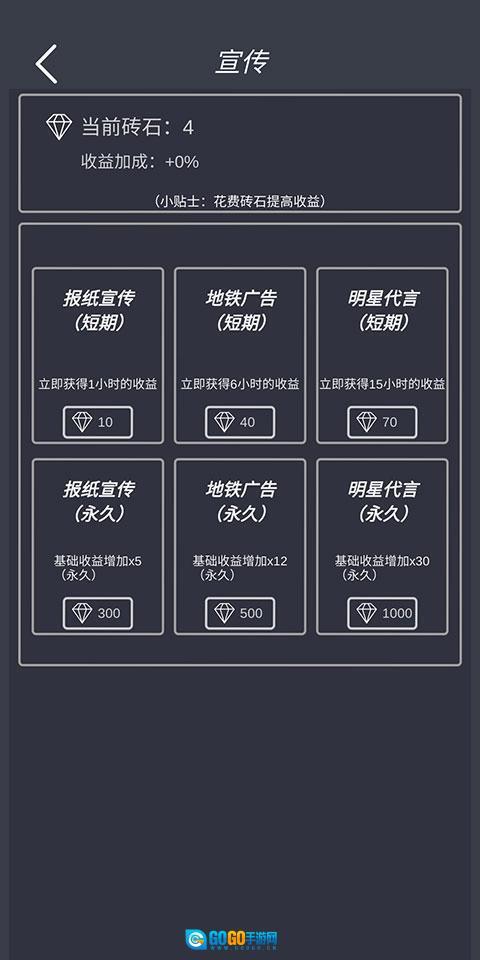 4、使用钻石来进行宣传,获得一定时间的额外收益。