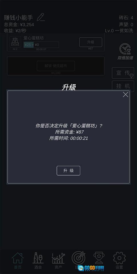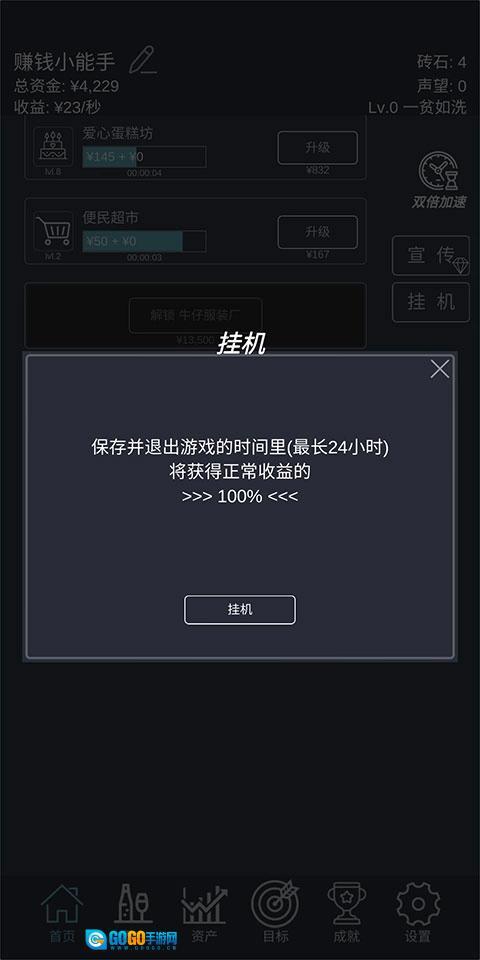 2、解锁第一家店铺后,就可以开始获得收益了。