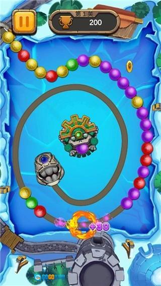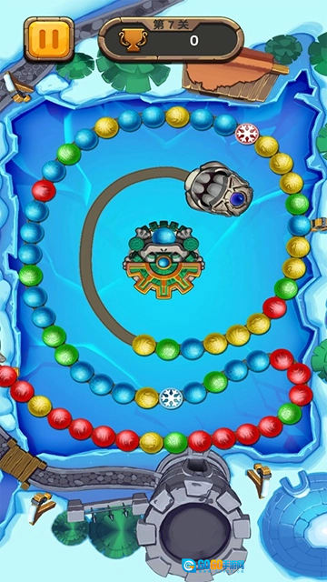 开心祖玛是一款玩法经典、内容清晰的休闲游戏。游戏中,玩家操控一只青蛙,它会不断从嘴中吐出不同颜色的小球,当相同颜色的小球连成三个或以上时就会消除。玩家需要在限定时间内,把场上所有小球全部消除;若小球队列延伸到青蛙嘴边,游戏就会失败。这款游戏不仅拥有精致的画面设计,延续了最原始的核心玩法,还新增了不少全新道具,更有丰富多样的关卡,能为玩家带来更多趣味挑战。