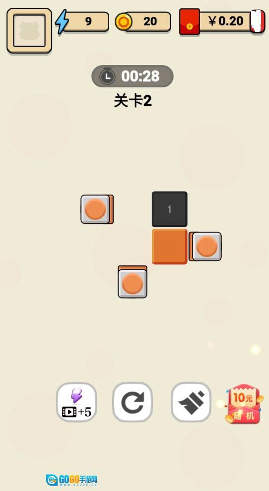 1.开启一段最难忘的闯关乐趣之旅,面对不同问题关卡,将目标推至指定位置,即可完成通关;
