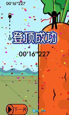 玩家操控小人攀爬萝卜的过程中设有计时机制,需要凭借出色的操作能力,尽可能让小人以更快的速度登上萝卜顶端。