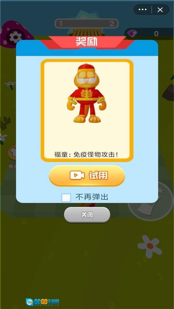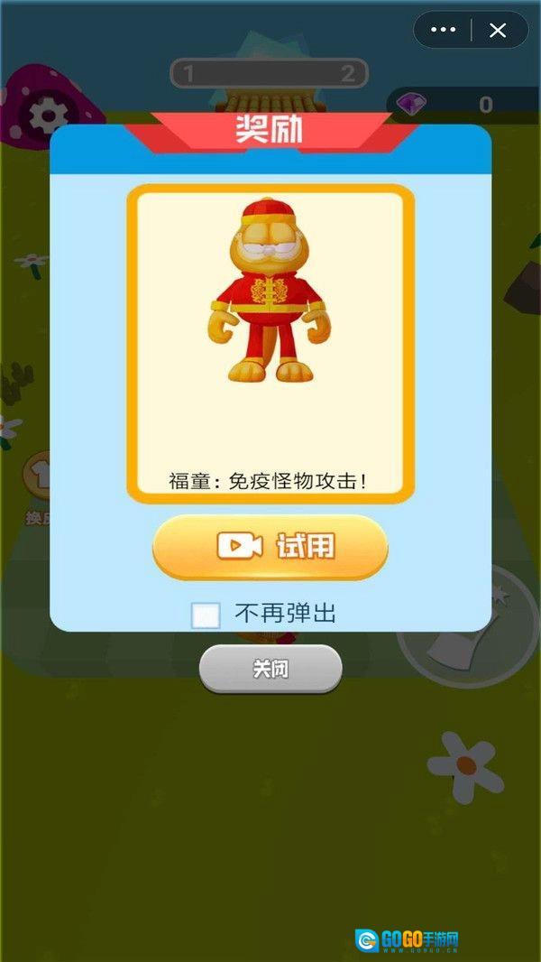 2、尽情挑战各式各样的关卡,不仅能获得丰厚奖励,还能试用不同的加菲猫皮肤。