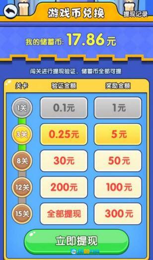 飞镖大作战游戏支持用游戏币兑换奖励,通过第一关能获得0.1,闯过第三关可赚取0.25,我花了3分钟测试这款游戏,确认它确实能赚钱。另外还有个活动:当储蓄币余额达到1500时,每日产生的利息会在次日到账。