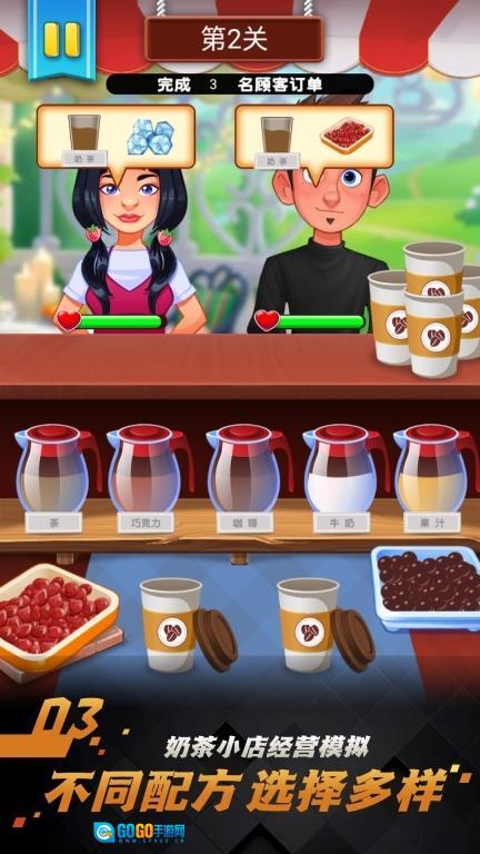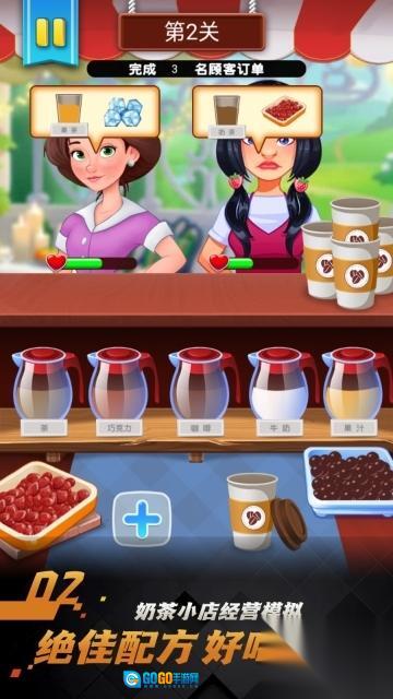 1、你要按照顾客的需求制作出美味的奶茶,持续推动小店发展,打造出独一无二的奶茶店,从中收获满满的成就感。