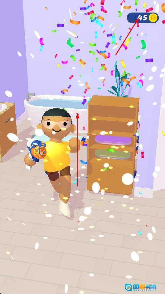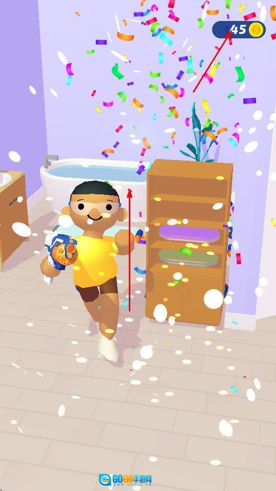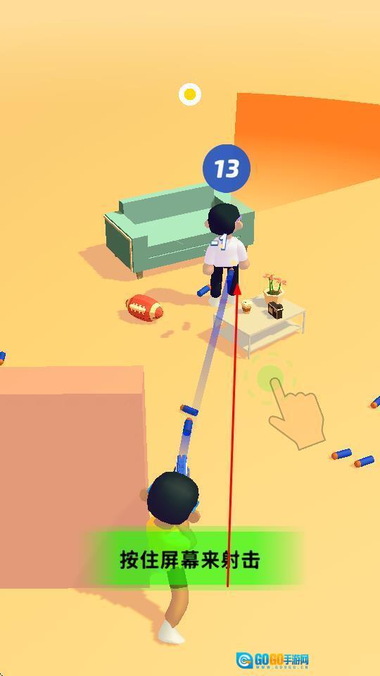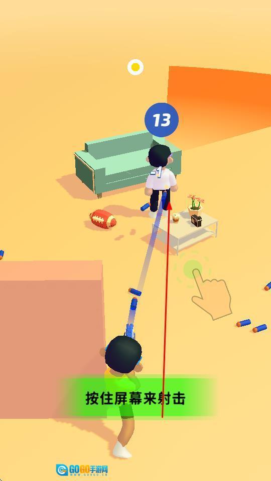 1、长按屏幕,操控角色发射软弹,对准目标,击中即可推动进程。