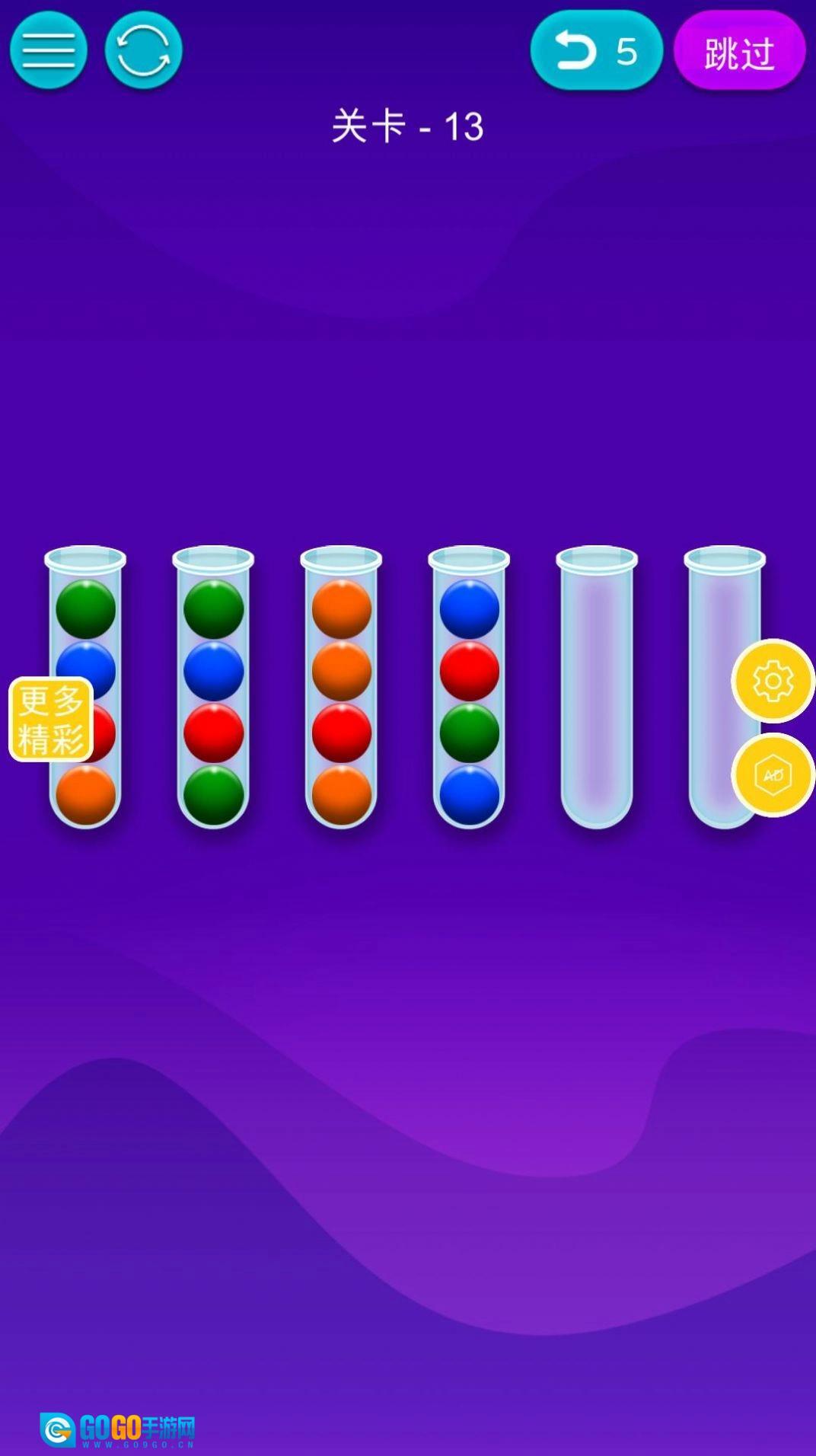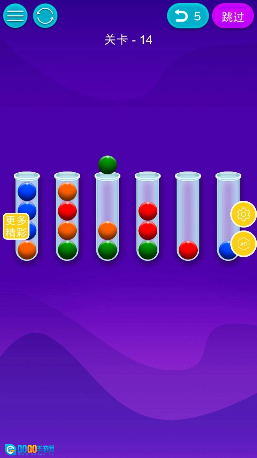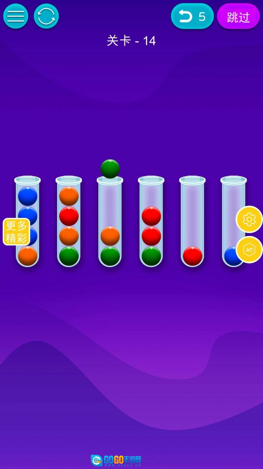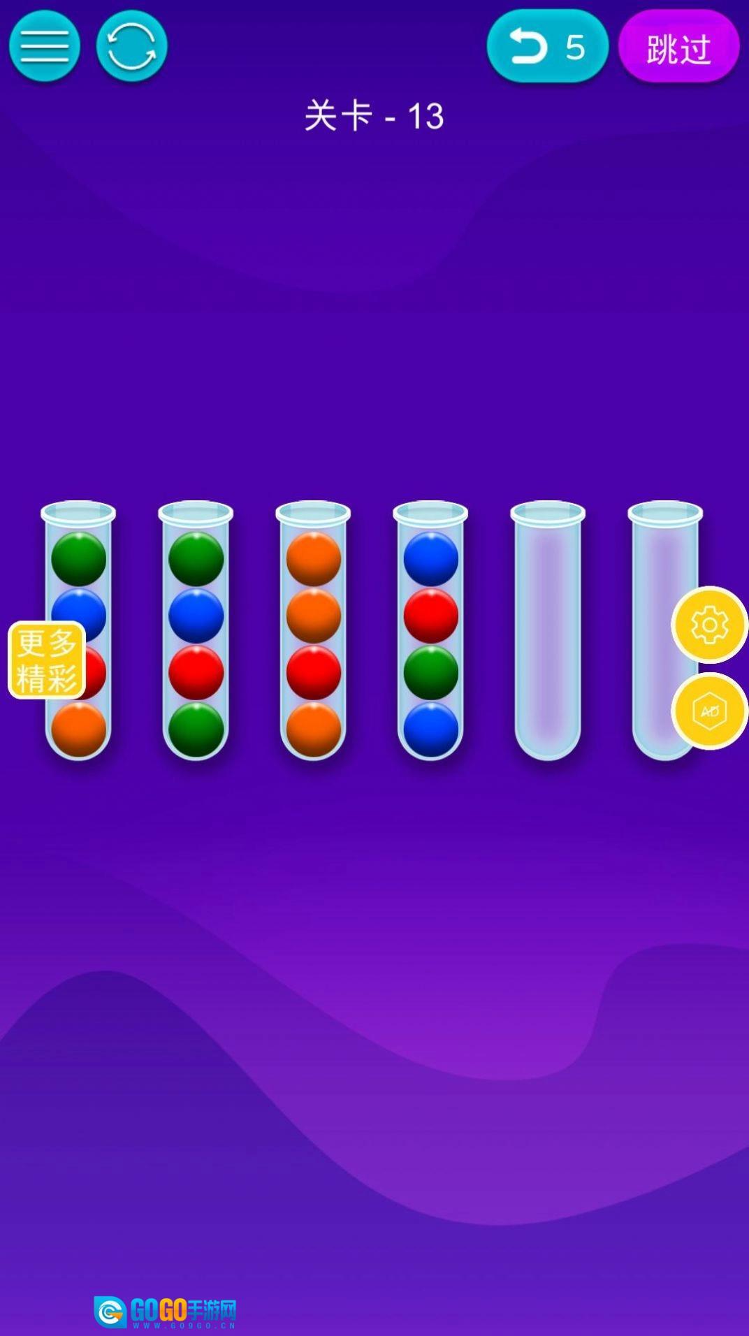 3、请记住一点,要是没有空间,您就没法移动管子顶部的球。另外还有一点,您只能移动管子顶部颜色相同的球。