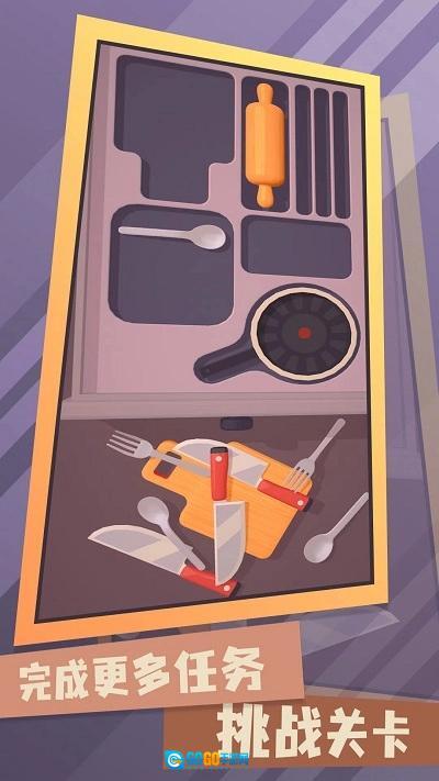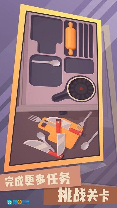 3.合理利用冰箱与抽屉的空间,让它们能容纳更多物品,只要摆放整齐就能通关,还能帮助玩家提升收纳能力。