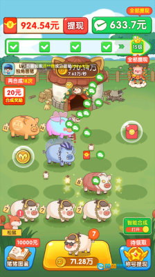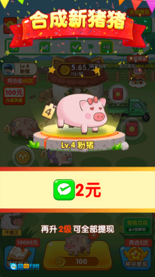 2、游戏里每次合成都会获得更高级别的小猪,而且解锁新猪猪时,我们还能拿到对应等级的奖励哦。