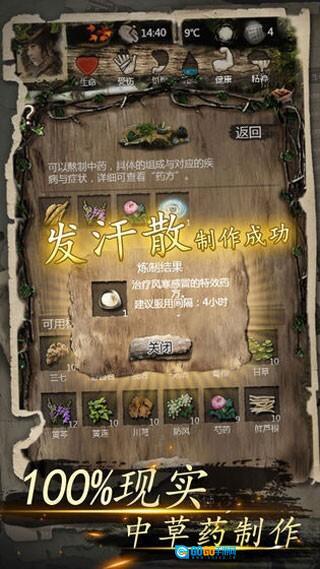 以生存模拟为核心玩法的作品,打造了别具一格的冒险体验,采用逼真画风与精细界面设计构建挑战。游戏融入创新草药文化增添趣味性,100%真实还原中草药制作流程,玩家需策略搭配药材,结合自身“身体特征”对症下药。探险场景设定在原始森林,玩家需解决吃喝、穿戴、住宿等生存问题,同时提防森林中的未知危险,以幸存者身份在未知世界中依靠自身行动挣扎求生。