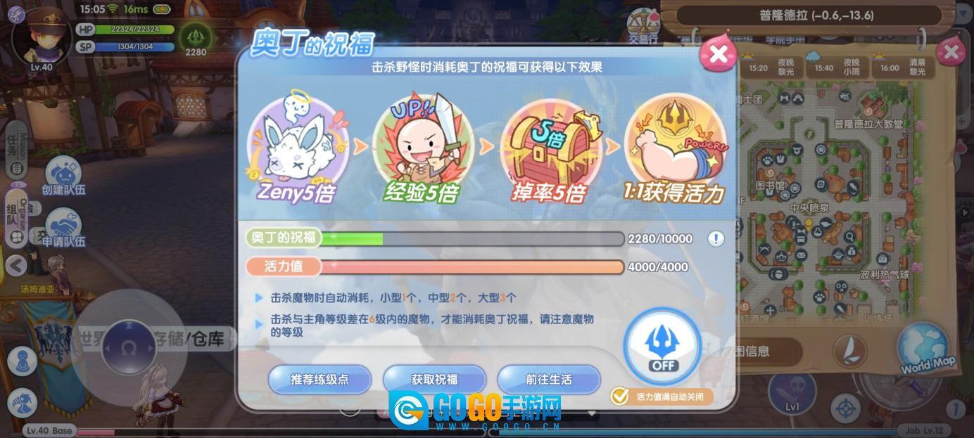 1)“奥丁的祝福”能显著提高我们刷怪的收益,帮助获取更多Zeny、经验和道具掉落;同时它还是每日活力的重要获取途径,每消耗1点奥丁祝福,就能得到1点活力值。而活力值是参与生活玩法、获取各类养成基础材料的主要消耗项。