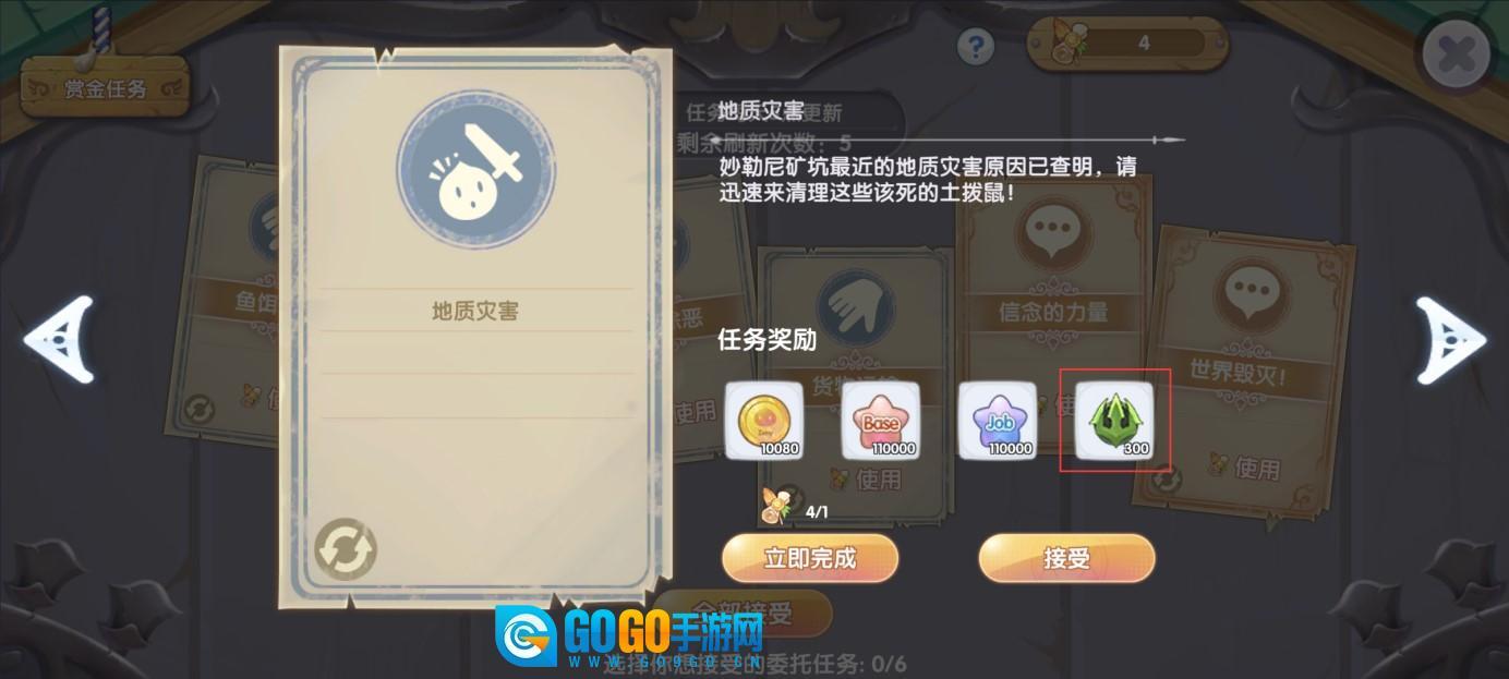 每日委托每天能接6个,每个完成后可获得300点“奥丁的祝福”,若完成当天所有委托,就能累计获得1800点奥丁祝福。