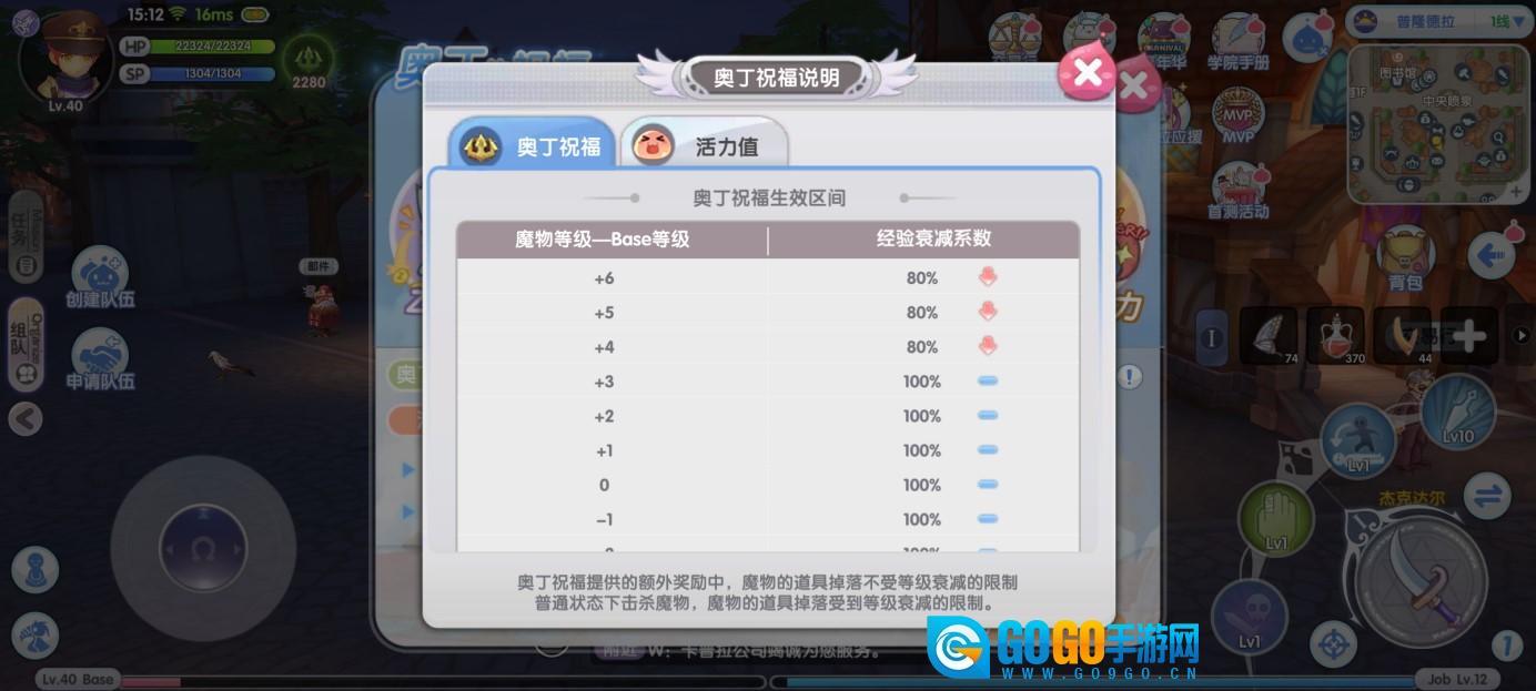 2)“奥丁的祝福”可简单理解为刷怪时会消耗的一种Buff,其生效有特定前提:魔物等级需处于人物自身等级的±6级范围内,若超出这一范围,既不会消耗该祝福,也无法获得奥丁提供的额外奖励;而满收益的等级区间是角色等级的±3级,在此区间内击败魔物,角色获得的经验系数为100%;若等级差在4~6级之间,经验收益会因等级衰减降至80%。