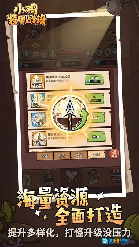 4、离线收益:玩家不在线时,小鸡们依然会持续战斗,帮助玩家积累资源与经验。