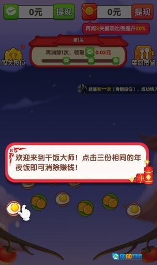 《干饭大师》是一款休闲向的消消乐游戏,在游戏里你能看到各种各样的美食,通关的方式是点击三份相同的美食进行消除。游戏中还能浏览到超多中国年夜饭特色美食,浓郁的中国文化氛围让玩家很容易上手,快来体验一下吧!