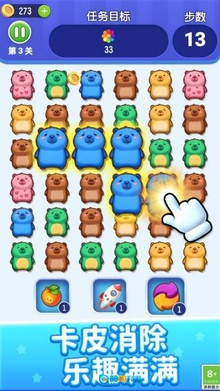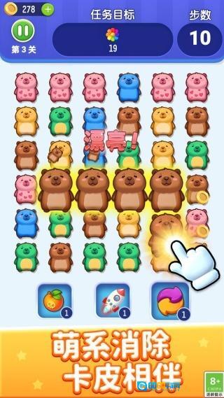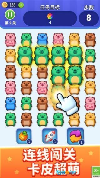 卡皮巴拉消一消是一款连线消除类游戏,采用萌系画风营造趣味闯关氛围,关卡设计多元丰富,借助连线消除的核心机制传递轻松惬意的游戏体验,每一关都配有专属目标,闯关时始终充满新鲜感与满足感,为玩家打造沉浸式的休闲娱乐时光。