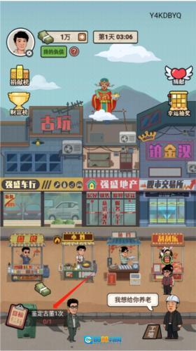 3、点击左下角的【目标】进行一次鉴定古董;