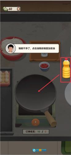 3、锅刷干净了,点击油瓶给锅里加些油