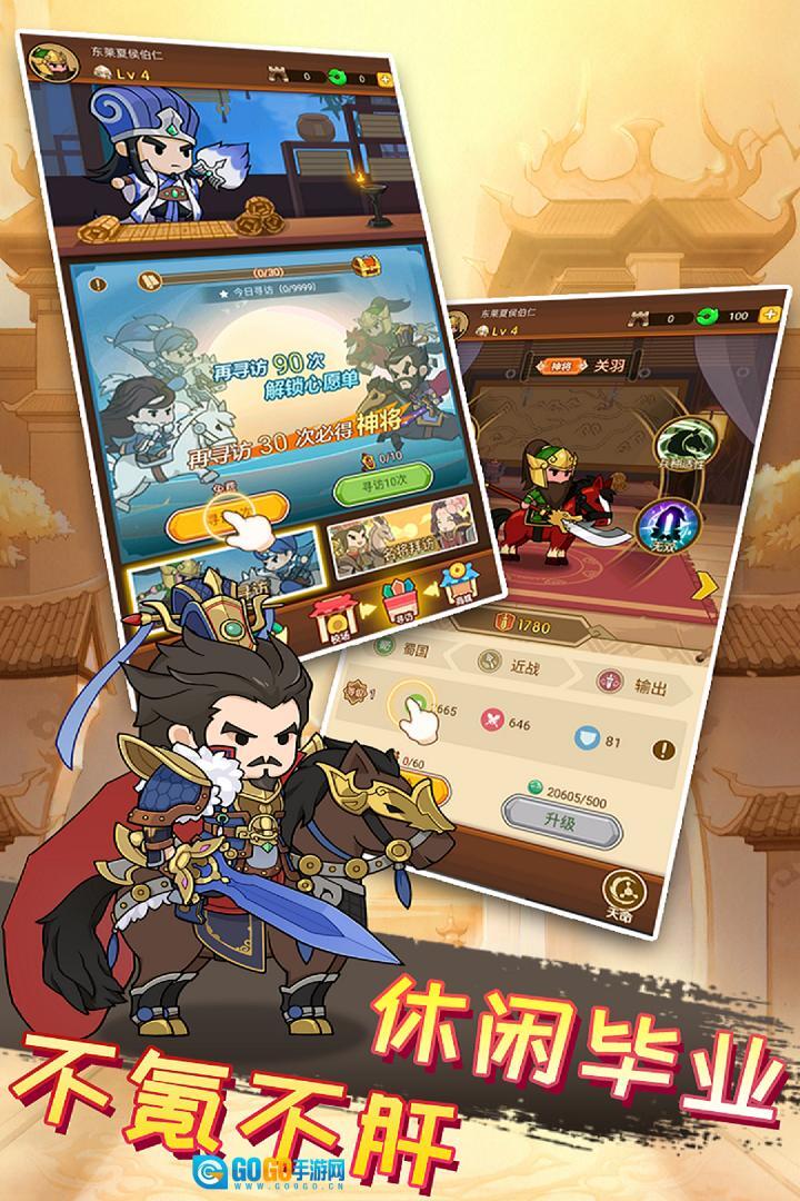 这是一款玩法独特的放置类游戏,玩家在游戏中通过解锁不同的武将来获取奖励,利用这些奖励可以不断扩大经营规模,是一款趣味性十足的放置游戏。