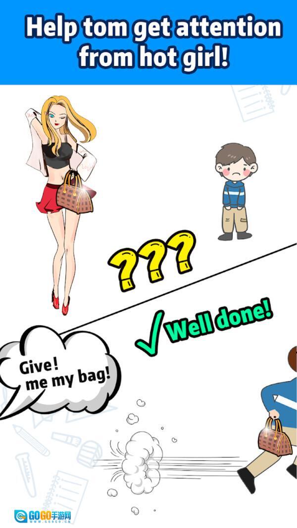3、采用简约的画风设计,搭配诙谐幽默的音乐,每一关的题目都充满魔性恶搞的趣味,让玩家沉浸其中、难以停手。