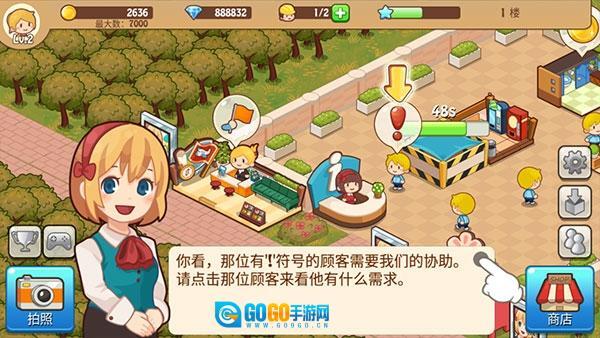6、头顶带有“!”符号的顾客需要我们提供协助,点击该顾客可了解其具体需求,再点击顾客要前往的设施,即可帮助他到达目的地。