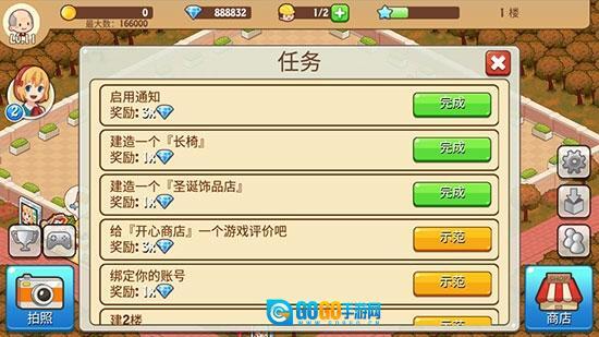 开心商店左侧有个角色图标,点击它就能看到任务提示。这里有各种各样的任务等待玩家去完成,完成任务后不仅能获得钻石奖励,还会有新的顾客群体前来光顾店铺,从而增加你的收入!
