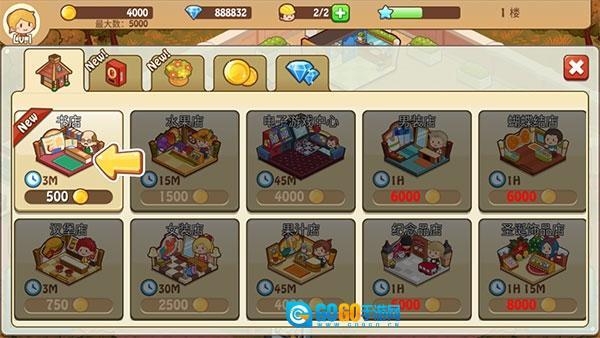 1、进入后,首先,我们来创建一个供顾客购物的『书店』,操作方式是点击商店,然后选择书店选项就可以了。