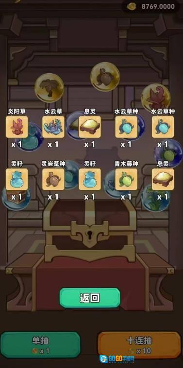 每天通过观看广告获取灵草种子,种植不同生长周期的灵草可收获灵果,灵果用于升级幻晶,进而产出耀石。