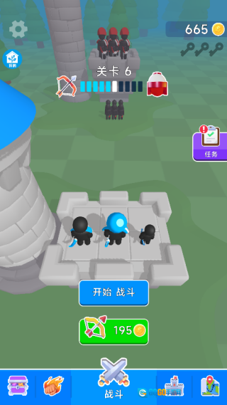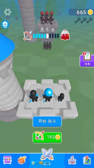 3、在视觉呈现方面,游戏运用了清新的卡通渲染画风,战斗时的特效绚烂夺目却不显杂乱,即便处于激烈的战斗场景中,玩家也能拥有舒适且轻松的视觉感受。1、在每个关卡开启之前,玩家能够购买弓箭手,等级相同的弓箭手能够通过合并来提升等级,玩家可以依据战场的实际情况,灵活地安排他们的位置。