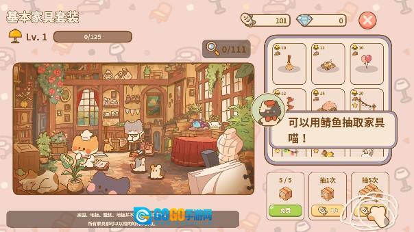 5、挑选好所需的家具后,点击小鱼干图标,就能完成购买操作。