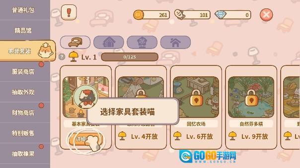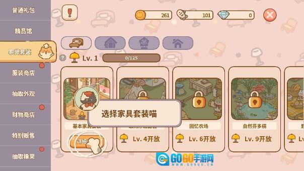 4、按照新手指引的提示,玩家得购置一些家具套装,以此来装点属于自己的空间。