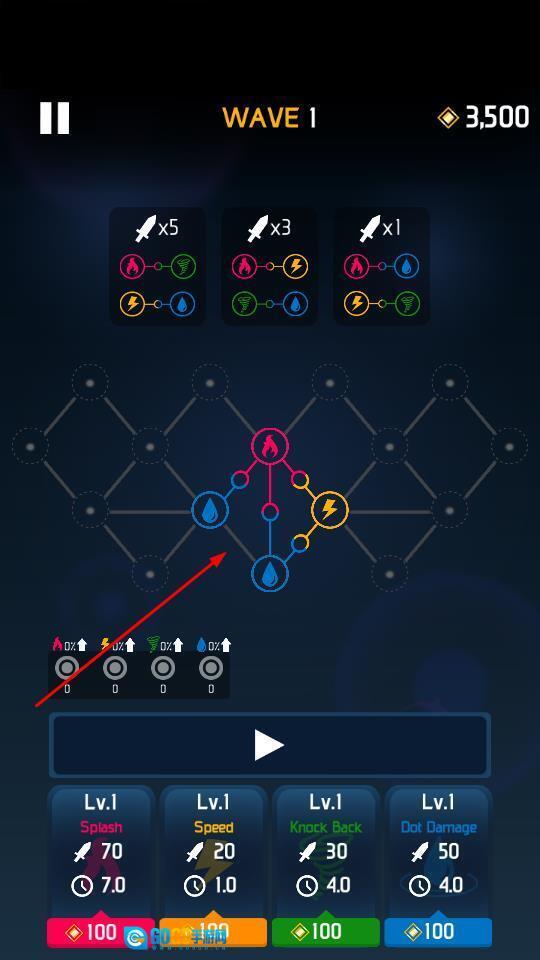 3、完成技能搭建后,点击播放按钮开启关卡,迎战一波波敌人。闯关成功即可解锁新节点,通过持续优化技能网络,就能完成升级。