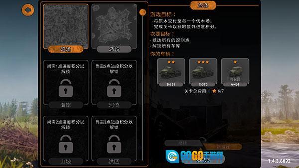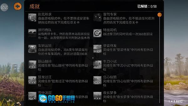 3、解锁“海岸”关卡里的全部车库;大卫王在牵引模式下用绞盘累计拖行其他车辆达50米;在专家模式中完成“沼泽”关卡;驾校学员。