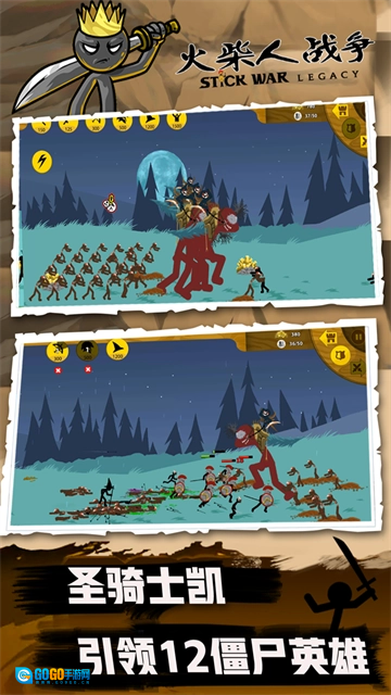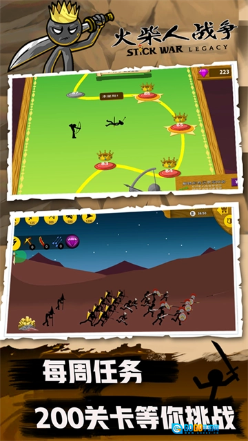 指挥你的军队进行编队,或是调遣各类作战单位;开采黄金资源,研习剑士、矛士、弓箭手、巫师乃至巨人的技能;摧毁敌方雕像,夺取全部领土。