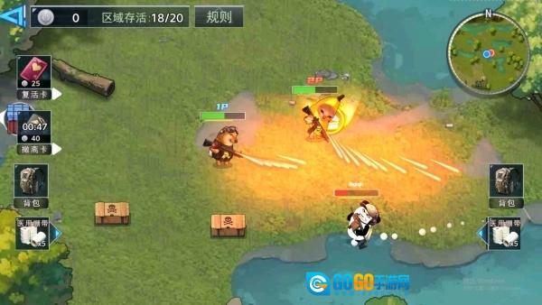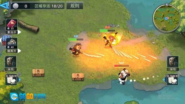 3、游戏地图里分布着随机宝箱,玩家有可能在开局时就捡到黄金加特林,也可能只摸到拖鞋这类武器,这种不确定性提升了游戏的趣味性与挑战性。