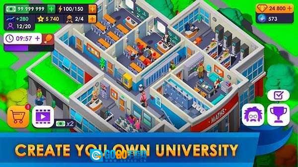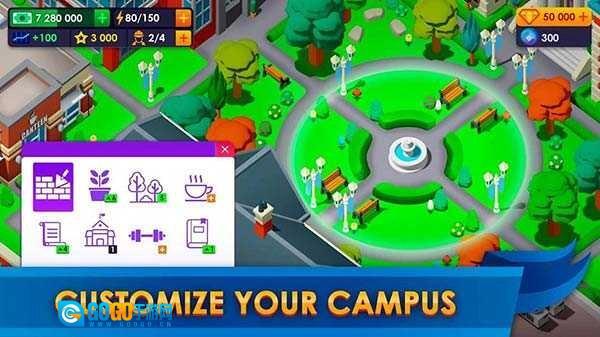 玩家能够轻松地经营一所大学,目标是吸引更多的学生进入他们的大学。