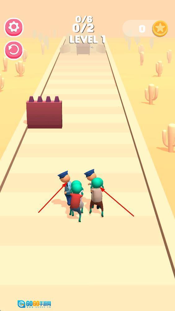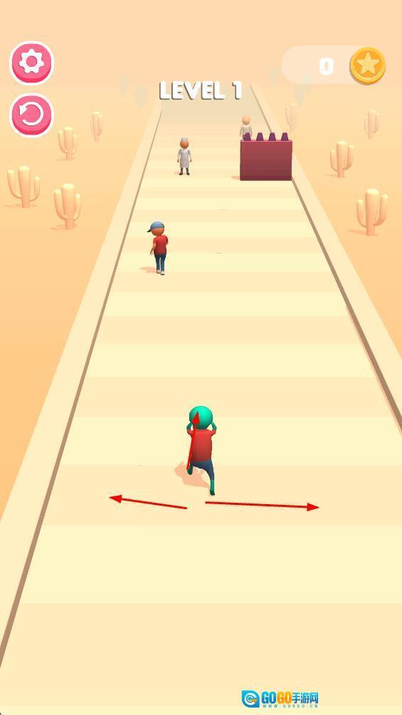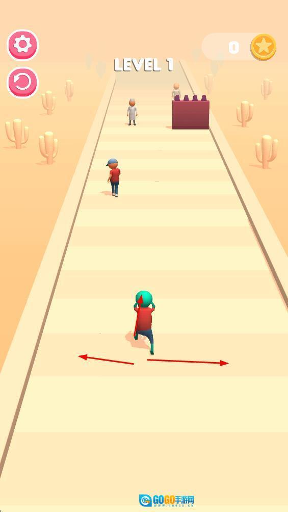 1、进入LEVEL 1关卡后,操控角色进行左右移动,收集前方出现的行人,以此让自己的队伍变得更壮大。
