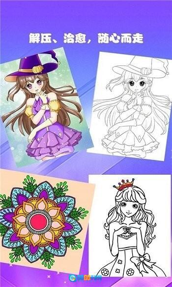 1、配色设计精致美观:基于精美的人物设计进行创作,丰富的色彩选项可供玩家自由发挥,大家能依据个人审美为图像填色,使原本单一的线条通过色彩呈现出别具一格的艺术风格。