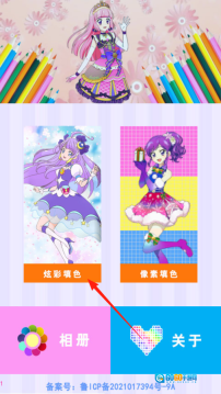 1、偏爱细腻画风的话,点击炫彩填色按钮就能感受类似铅笔手绘的上色质感;若想体验马赛克风格,可选择像素填色模式。这两种填色方式完成的作品,都可以在相册中查看。