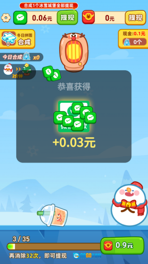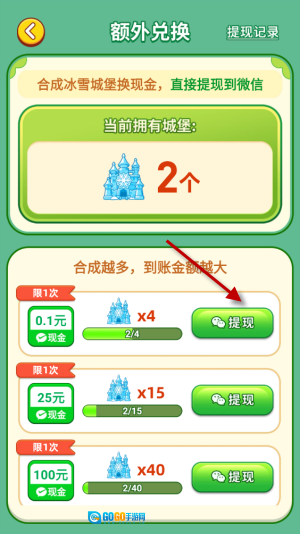 5、合成出的冰雪城堡也能直接兑换提现奖励。